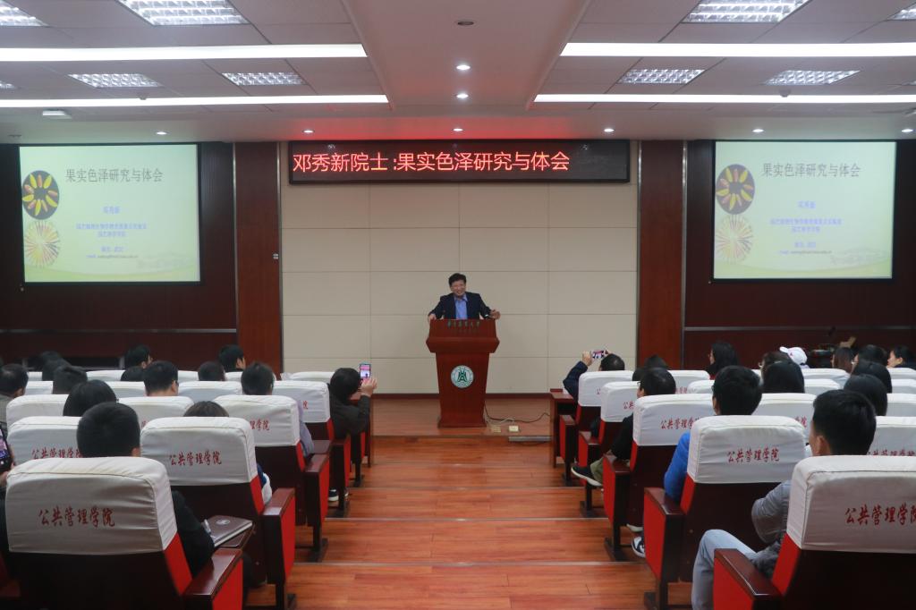核心提示:12月14日晚,中国工程院院士邓秀新做客我校公共管理论坛,在人文楼M115报告厅带来了题为“果实色泽研究与体会”报告。