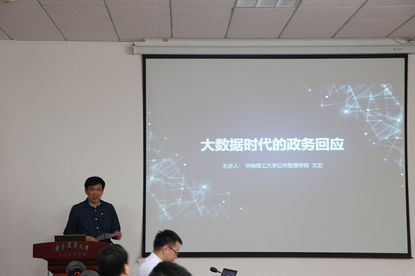 5月6日,华南理工大学文宏教授做客我校公共管理论坛,在人文社科楼M101报告厅带来主题为大数据时代的政务回应的报告,并与在座师生进行交流学习。报告会由雷速足球即时比分网