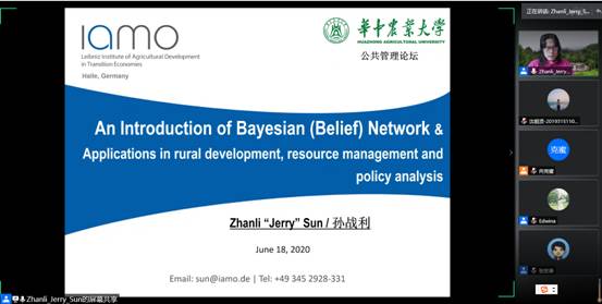 公共管理论坛,带来了题为“Introduction to Bayesian network and its applications in rural development,resource management and policy analysis”的空中学术讲座,来自校内外160余名师生在线聆听报告并互动交流。