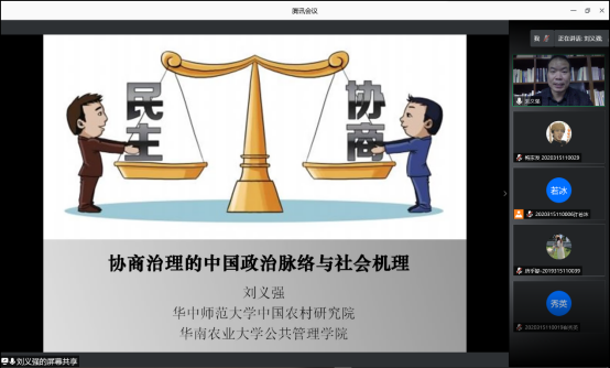 12月6日,华中师范大学中国农村研究院刘义强教授做客我校公共管理论坛,带来了题为“协商治理的中国政治脉络与社会机理”的空中学术讲座。报告会由雷速足球即时比分网