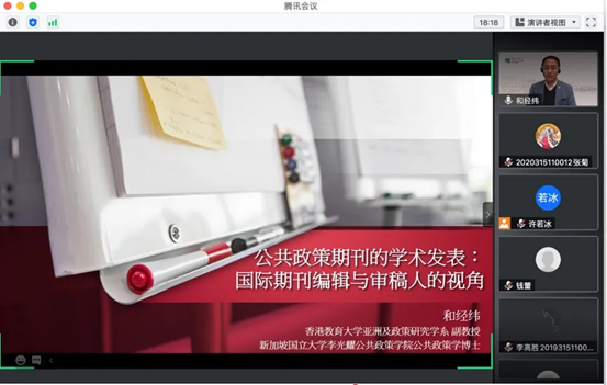 和经纬副教授主要从公共管理与公共政策概述、公共管理与公共政策研究、编辑与审稿人视角谈论文等方面展开报告。报告开始,和经纬副教授从公共管理与政策学科学术发表生态进行引入,介绍了好文章的必备要素:理论扎实、方法适切、故事有趣。他指出,在中国,广义的公共管理是一个跨学科领域,吸收了多学科的理论成果,它与公共政策的学科基础及理论范式非常不同。