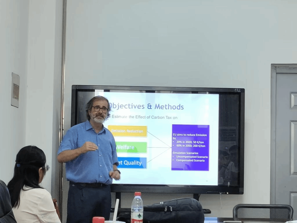 随后,José M Gil教授为我们介绍了数据的来源和具体特征,指出碳税促进气候友好型食品消费的有效性,研究使用EASI需求模型来探究价格弹性,设置政策的场景来计算排放损失费用,通过数量变化、大量营养素比例、补偿变化来分别探究减排、饮食质量的影响和福利问题。联系风险态度,基于前景理论,考虑了风险厌恶情绪、损失厌恶和概率加权参数;使用稳健OLS回归、时间偏好模型和分对数回归,测度了加泰罗尼亚的时间偏好和身体质量指数。结果表明:通过对不同食物类型设置税收和补贴政策,不同补偿政策的情况下,不同种类食物的弹性、消费量、减排的影响、福利的影响、饮食质量的影响和对营养需求的影响都各有差异。风险和损失厌恶以及时间偏好也同时对食物的各项特征有不同的影响。