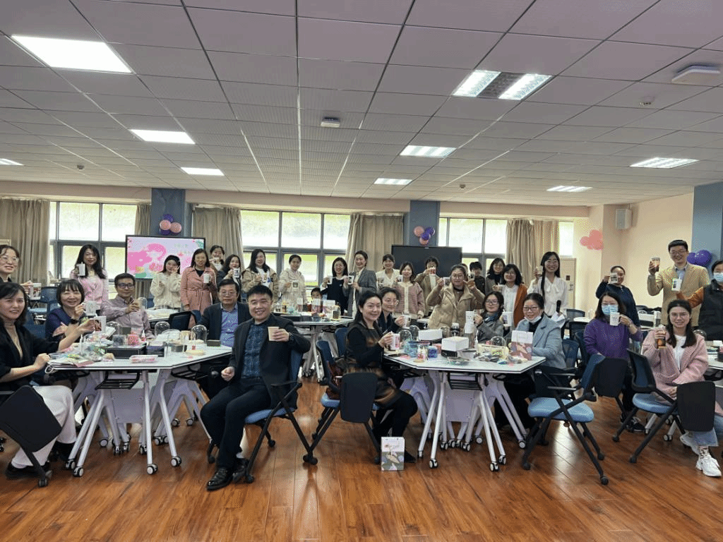 党委书记周向阳、院长柯新利为大家送上节日祝福,将印有每位女教工最幸福瞬间照片的马克杯送至大家手上。老师们任选白开水、咖啡、果汁、花茶等,将她们认为的“最幸福的味道”倒入自己的专属杯中,并向大家分享幸福的感觉和工作、学习、生活中的心得。