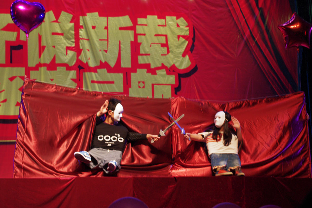 在这一篇章中,最令人印象深刻的要数公管院的情景剧《Mini Funny》。刚出场时,你一定很好奇,小人的手和脚从哪儿来?其实每个小人都需要两个同学的合作,一个同学两只手套上衣服,做小人的脚,而另外一名同学站在表演的同学身后,只露出两只手,看似简单的动作,却需要两个人的默契配合。小说《射雕英雄传》,小虎队的《爱》,以及之前大热的wonders girls 的《nobody》都在幕布前以幽默欢快的效果得到了再次展现。而舞道节拍的舞蹈《love in the club》也展现了当代大学生的活力与热情。