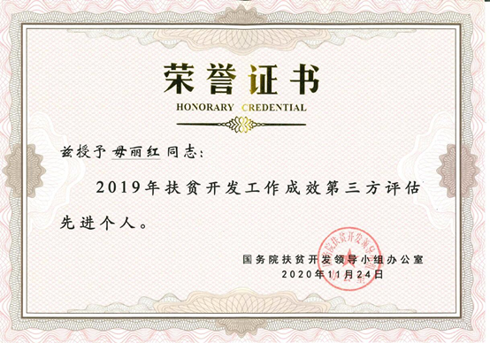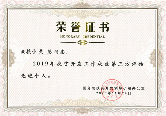教师毋丽红、黄慧荣获“2019年国家精准扶贫开发工作成效第三方评估先进个人”称号。国务院扶贫办副主任夏更生、中国科雷速比分网
