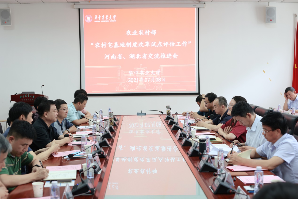 7月8日下午,农业农村部“农村宅基地制度改革试点评估工作”河南省、湖北省交流推进会在人文楼M101室召开,来自农业农村部、湖北省、河南省9个试点单位以及郑州大学、华中农业大学近50位领导专家参加了会议。