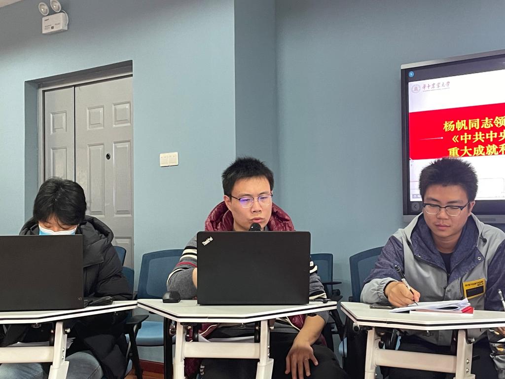 与会人员围绕如何贯彻落实十九届六中全会分享了心得体会。胡小芳同志结合自己教育工作者的身份谈到,我们应积极响应十九届六中全会精神,用习近平新时代中国特色社会主义思想武装头脑,落实立德树人的根本需求,为党育人,为国育才,把论文写在祖国大地上,为建设一流公管贡献力量。一是要以学生为本,扎扎实实做好教学工作;二是面向国家重大发展战略需求,结合自己的研究方向,为国家献计献策;三是要在新时代实践中,不断丰富和发展,努力做好社会服务。