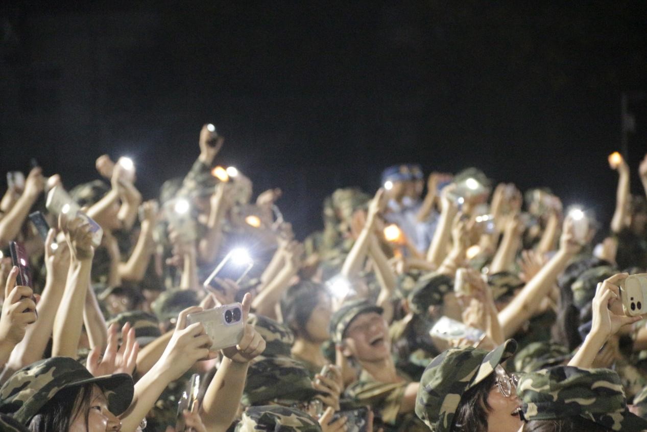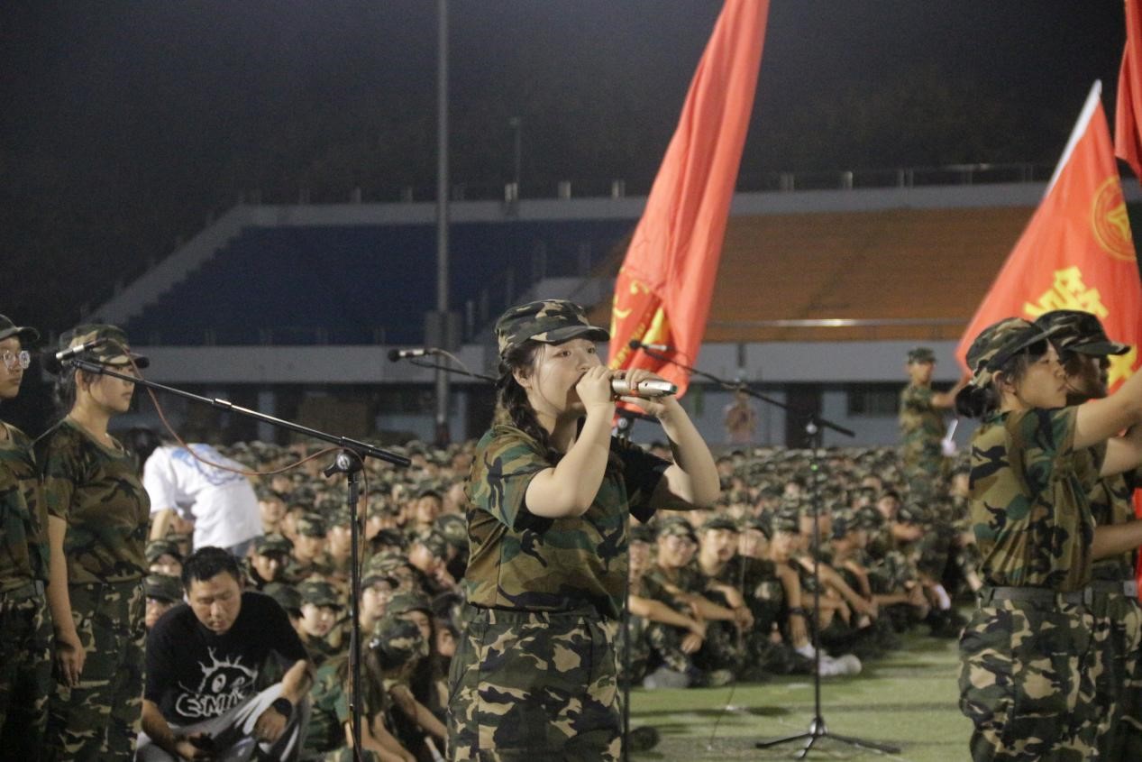 随后军训教官进行节目表演,充分展示了军人的雄姿。在全体军训学员的大合唱《没有中国共产党就没有中国》的歌声中,歌会步入尾声,青春的誓言在今夜唱响。