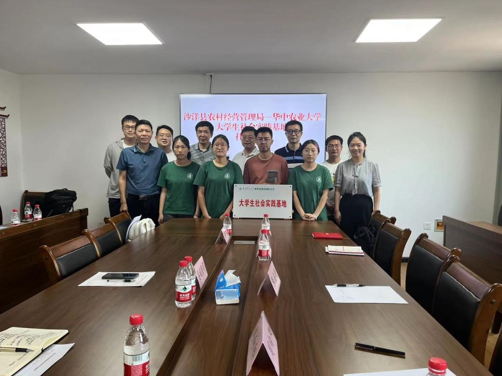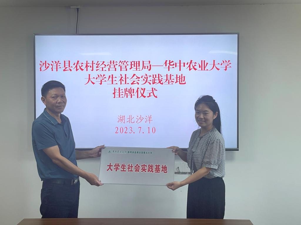 与湖北省荆门市沙洋县农村经营管理局联合举行华中农业大学“大学生社会实践基地”揭牌仪式,沙洋县农村经营管理局局长王家平、雷速足球即时比分网