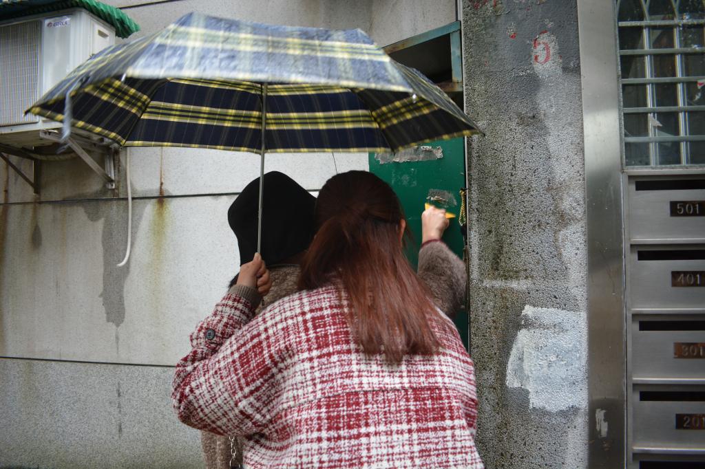 随后,由于天气原因,志愿者们两人一组配合完成“一喷一铲一擦”工作。两个多小时后,电线杆上、楼道里、电缆箱外表等广告张贴密集处的小广告都被清除干净。一位社区大爷说道:“洁白的墙壁被各色小广告覆盖,极大地破坏了校容校貌。感谢同学们的辛勤劳动,小广告一除,楼道里整洁了许多。”