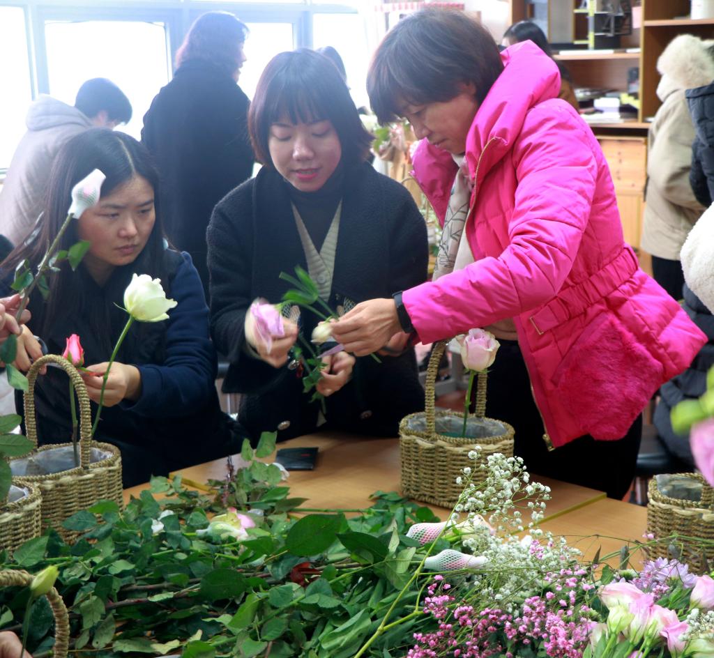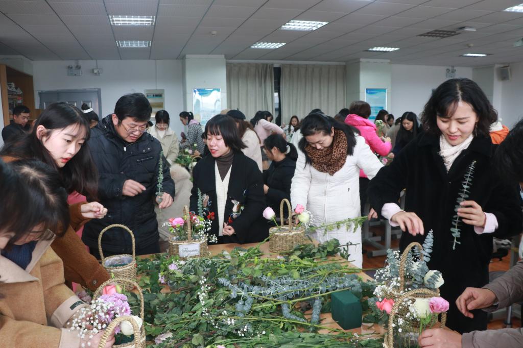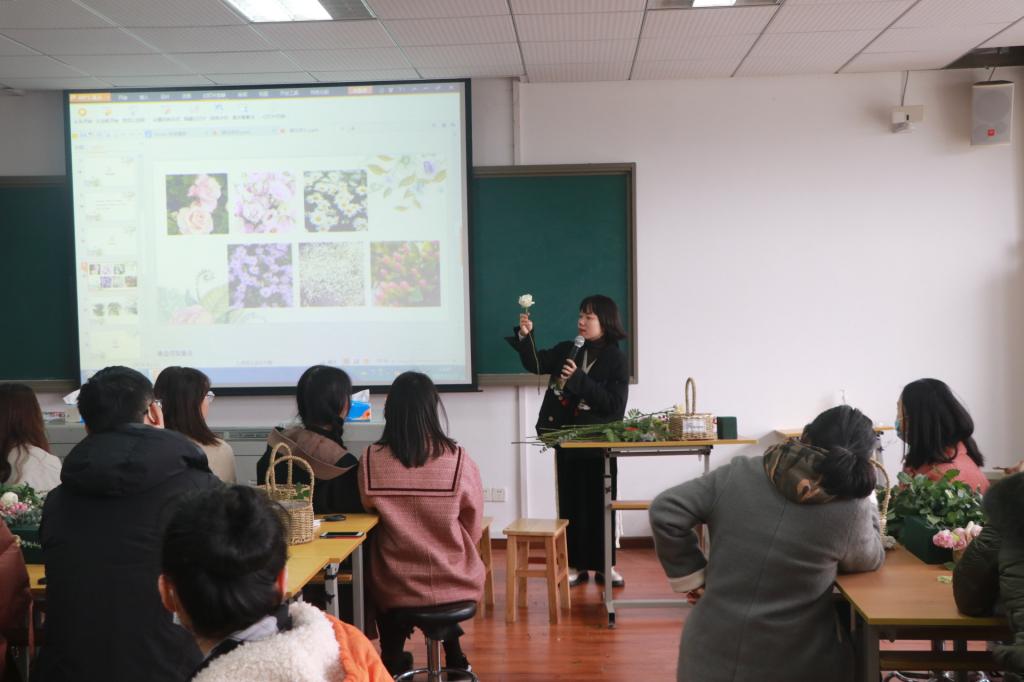 张瑜服务队成员马丹阳、冯霄受邀,现场进行专业花艺知识讲授和插花指导。