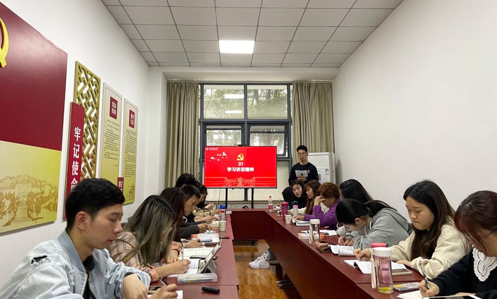 土地资源管理本科生党支部在人文楼M108进行党史学习教育。组织员宋要武老师,辅导员吴晗老师参加学习。