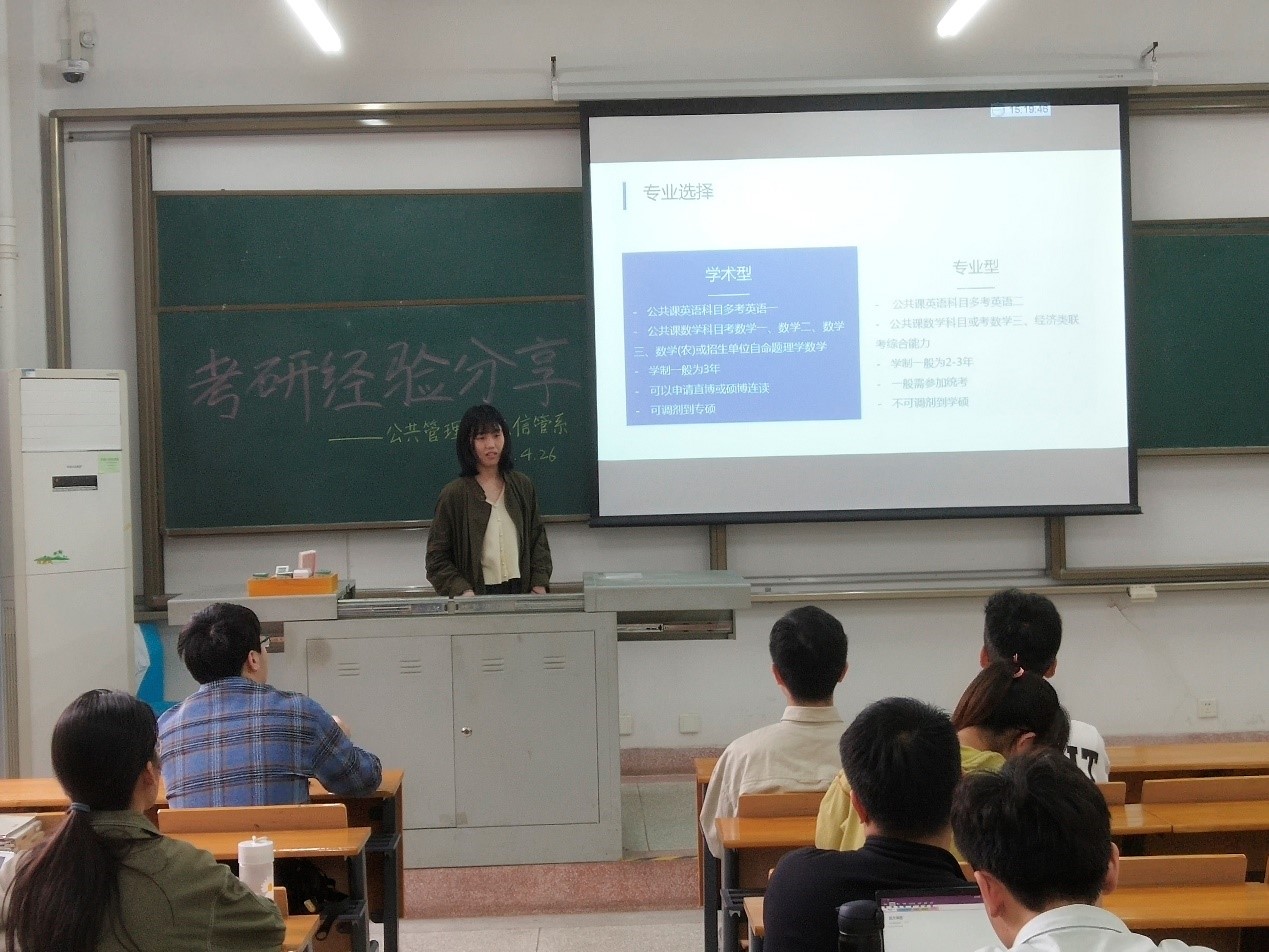 分享会的最后,17级学生针对18级提出的考研相关问题进行了解答,并围绕“就业规划”、“备考雷区”等主题进行了简短讨论,17级表示随时欢迎各位18级学弟学妹前来咨询考研问题。