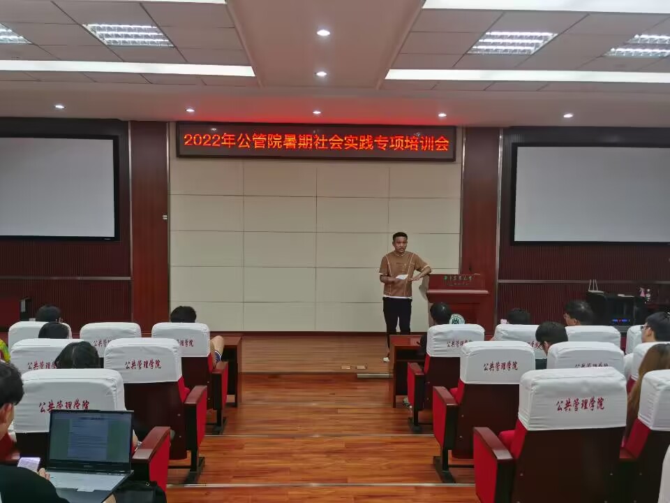 在人文社科楼M115举行2022年暑期社会实践专项培训会。会议由辅导员徐冠博主持,52支暑期社会实践团负责人参加本次培训会。