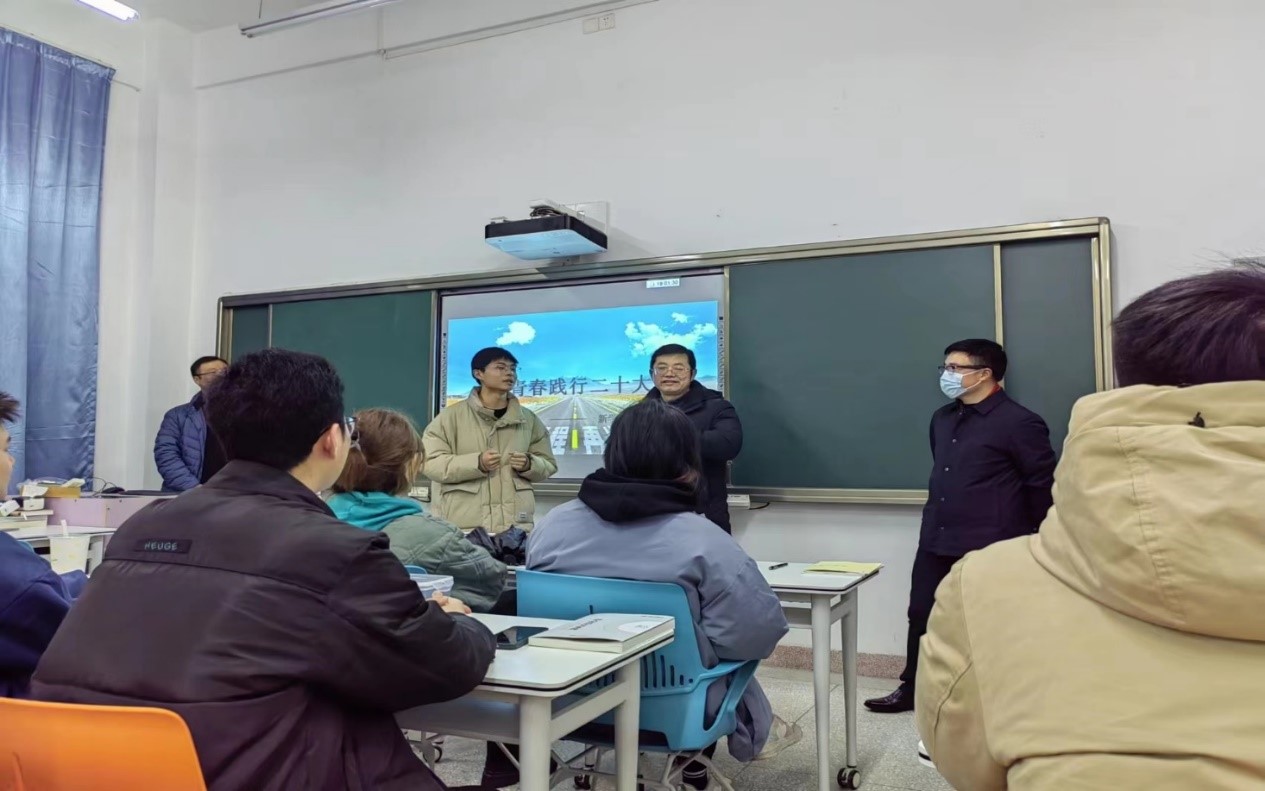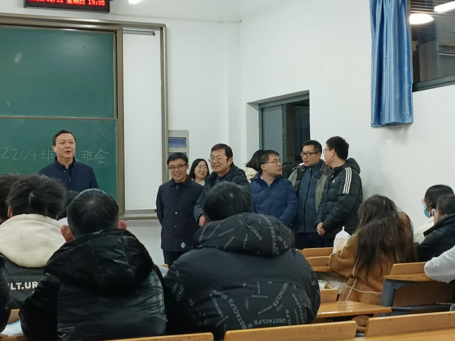 在走访各班班会现场时,周向阳书记为全体师生鼓劲打气,他指出,新学期同学们要把学习搞起来,多多交流,心怀期待,以朝气蓬勃的姿态奋发前行。在工程管理2102班班会现场,柯新利院长以最近大火的“ChatGPT”引入,鼓励同学们不断体验大学生活,主动参加各项学生活动,深入挖掘自己的内在潜力,也要时刻关注大环境的变化,了解大环境的走势,在不断探索和思考中找到自己的位置。王家合副院长也寄语同学们,要在实践中取得成长,发现自身的不足,积极进取,争创佳绩。