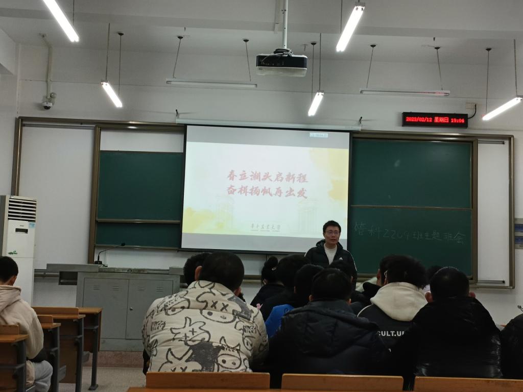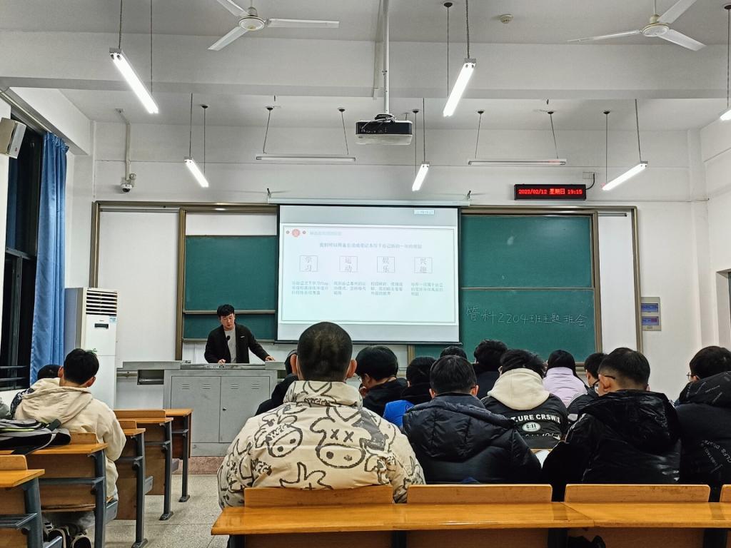 管科2204班施成灿围绕“爱国、团结、奋斗、科学、互助”关键词,结合党的二十大报告与同学们分享了寒假见闻,现场气氛活跃。管科2201班学习委员张乐钰对上学期的学习情况进行了分析总结,提醒同学们调整学习状态,把握学习生活节奏。