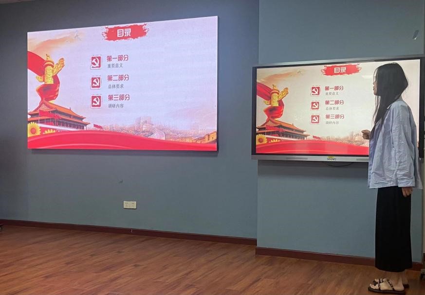 随后,孙珂同志领学中央政治局第十五次工作会议精神和习近平新时代中国特色社会主义思想教育工作主题会议的会议精神。她在领学过程中着重介绍了在思想教育工作中党员同志要坚持做到的“五个要求”原则及其相关内容,引起了与会党员同志们的热烈探讨。