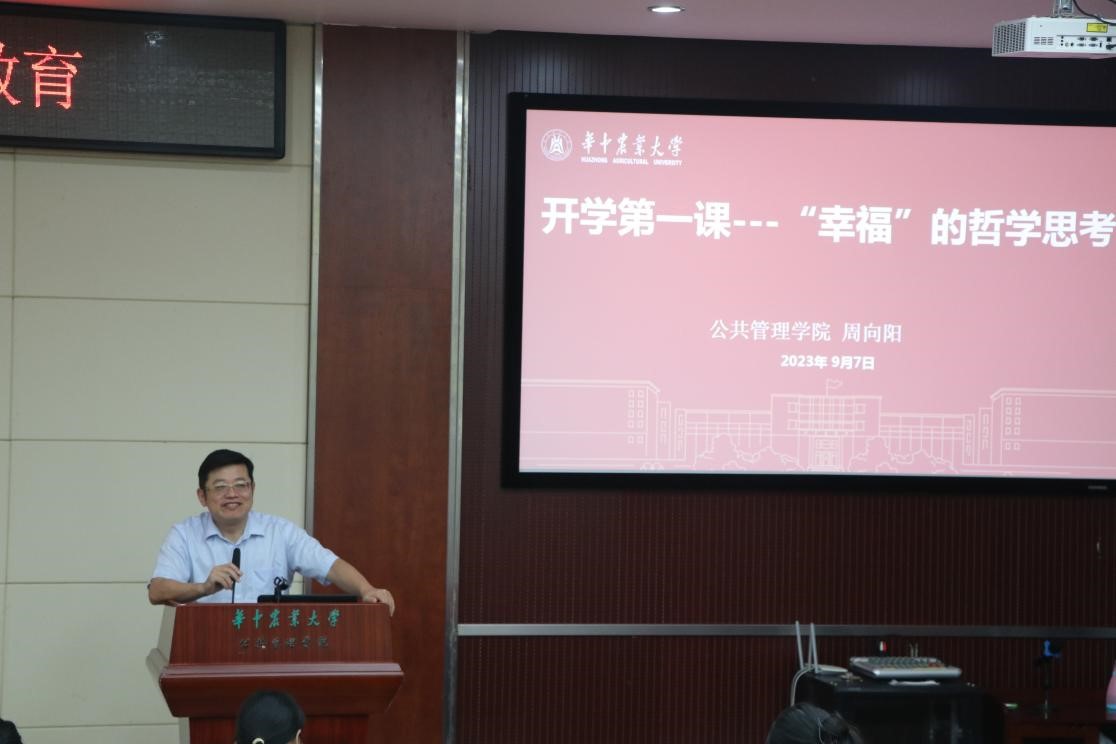党委书记周向阳分享了以“开学第一课:幸福的哲学思考”为主题的报告。周书记从“幸福公管”的雷速比分网