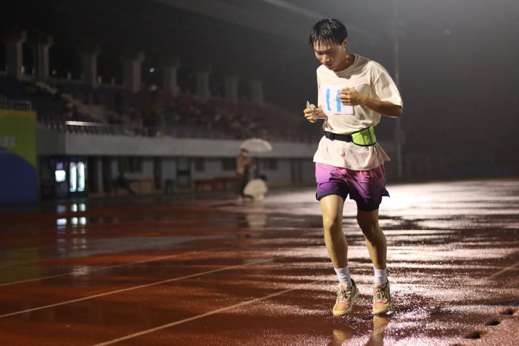 24级新生刘洲也参与了这次万米长跑。作为跑步爱好者,刘洲的长跑经验稍显稚嫩。但他依旧顶着大雨,一步一步跑完了全程。赛后他说出了自己的感受:“这次跑的比南湖跑快,也没有放任自己走路休息。虽然没有取得好成绩,但相比之前的自己进步了许多!我相信这次比赛对我而言的意义绝不比站上领奖台少。”豁达乐观不气馁,他自称自己所有的“阿Q精神”也正是体育精神淋漓尽致的体现。更快更强,超越作为最大敌人的自己,正是人生的必要一课。于狂风暴雨中征服过往的懦弱与颓废,于雨过天晴中破茧为更好的自己。
