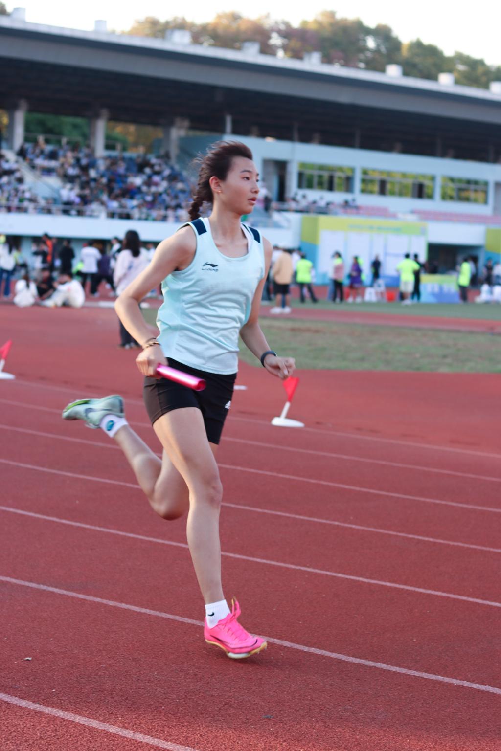 弯道超越,坚定不移。赛程过半,来到弯道追击区。三棒选手谢欣倚不敢有一丝懈怠,迎着雷速比分网