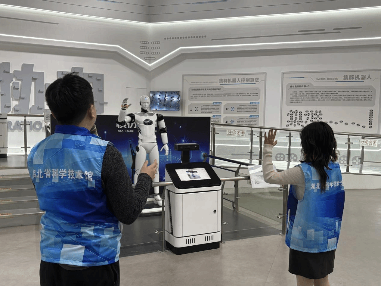 展厅内,一个站立的机器人吸引了孩子们的目光,它搭载先进视觉传感器,实时采集体验者图像。屏幕一端,志愿者展示着机器人同步模仿动作功能,另一端传来安乐井小学同学们的声声惊叹,科技的种子在他们心间生根发芽,激发了对机器人世界的向往和探索热情!