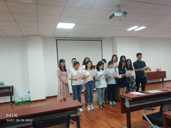 博士研究生党支部由王子洋同志带领支部全体党员贯彻学习中共中央办公厅、国务院办公厅引发的《关于隆重庆祝中华人民共和国成立70周年广泛组织开展“我和我的祖国”群众性主题宣传教育活动的通知》,并开展“不忘初心、牢记使命”主题教育集中学习研讨,深入学习习近平总书记关于“不忘初心、牢记使命”的重要论述选编。各位党员同志在研讨学习中,就自身实际发表个人看法,最后集体歌唱 《我和我祖国》为祖国献礼,全体列席党员同志用炙热嘹亮的歌声表达了对祖国的热爱之情。