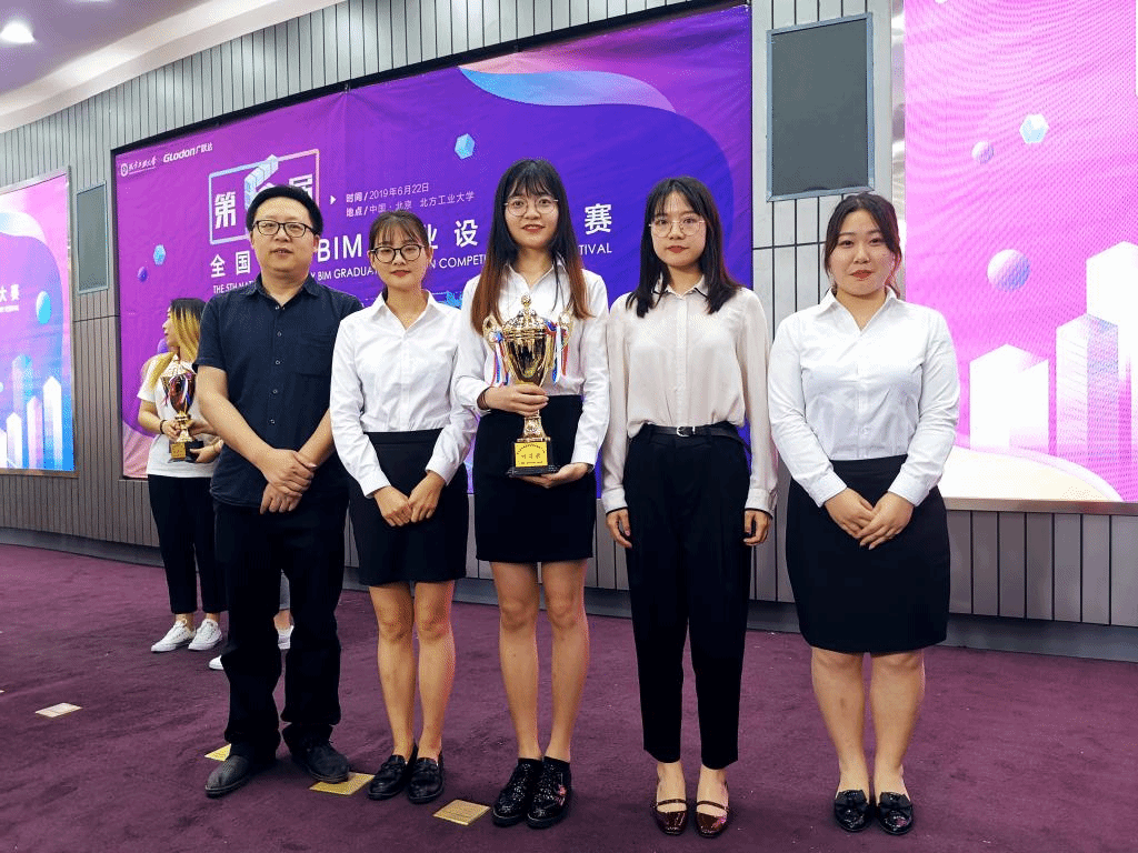 工程管理专业的郑思敏、潘子瑶、高小雅、杨怀若、国馨月五名同学组成的战队经过半年的精心准备和汇报现场激烈的竞争,从103支决赛队伍中脱颖而出夺得了特等奖。