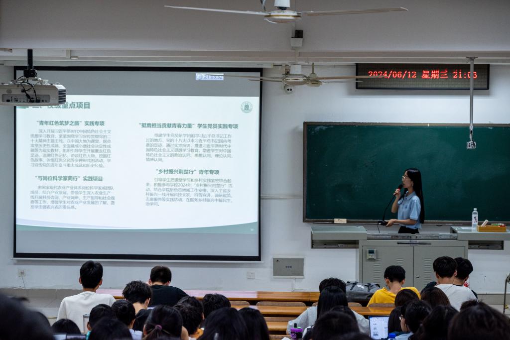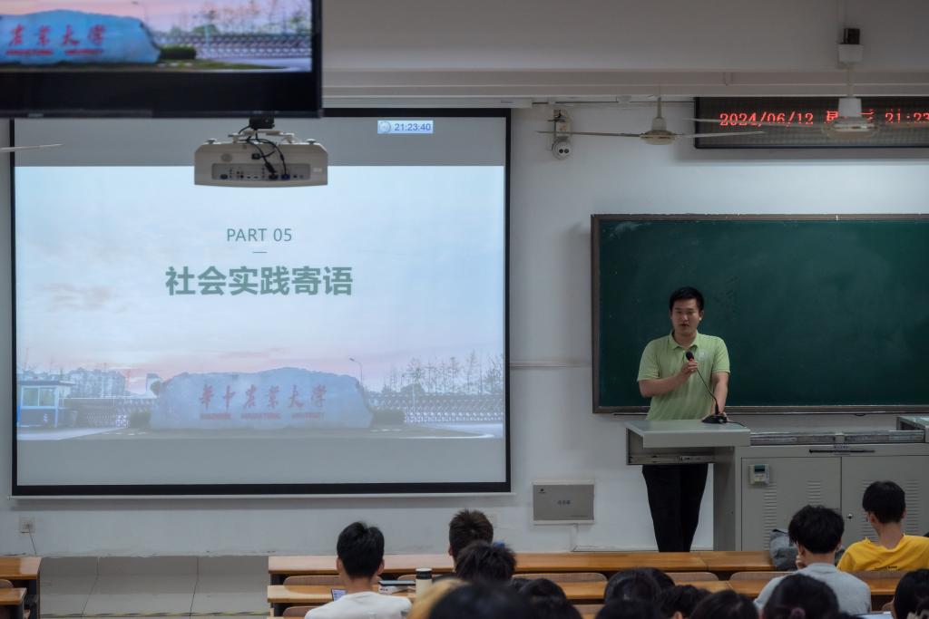 在分享环节,吴小龙则从细节出发,为学生们提供了宝贵的建议。他提醒学生们在社会实践过程中,注意信息门户的申报工作,慎重选择指导老师和实践主题,并积极开展宣传工作。最后,他以“用脚步丈量大地,用汗水浇灌青春,在社会实践中展现青春色彩”作为寄语,激励学生们勇敢实践,书写青春篇章。
