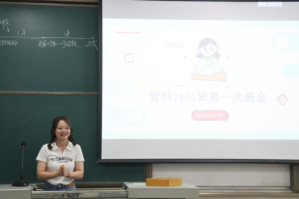 在管理科学与工程2401班的班会现场,学班赖方静为新生们准备的名牌蛋糕成为了连接同学们情感的纽带。副院长丁艳华则以独特的“两吃”理念寄语新生,一要吃苦,以坚忍不拔的毅力面对学习中的困难与挑战;二要吃亏,“小事不计较,大事一起扛”,常怀包容之心,以积极的态度尽快融入集体,共同营造和谐友爱的班级氛围。