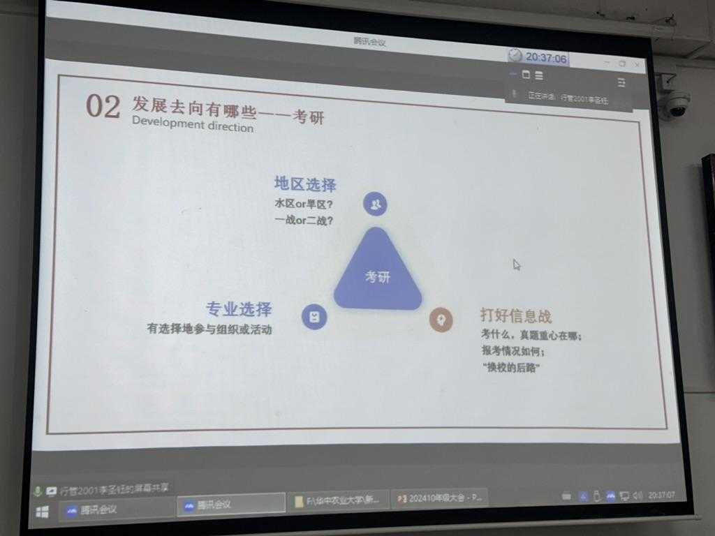 最终,来自2024届土地资源管理专业的毕业生方心琪,以其个人奋斗历程为鉴,鼓励同学们“要相信水到渠成的力量”,并强调了持之以恒的重要性,认为这是通往成功的必经之路。方心琪在本科阶段连续六个学期蝉联专业榜首,荣获了包括大学生标兵、学习成绩特别优秀奖、国家奖学金及乡村振兴新长城奖学金在内的多项殊荣,目前正就读于浙江大学土地资源管理专业硕士研究生阶段。她特别提醒同学们:“切勿盲目从众,而忽视了自我探索的道路。”鼓励大家勇于尝试,认识到每个人的独特性和差异性,倡导选择最符合自身条件的成长路径。